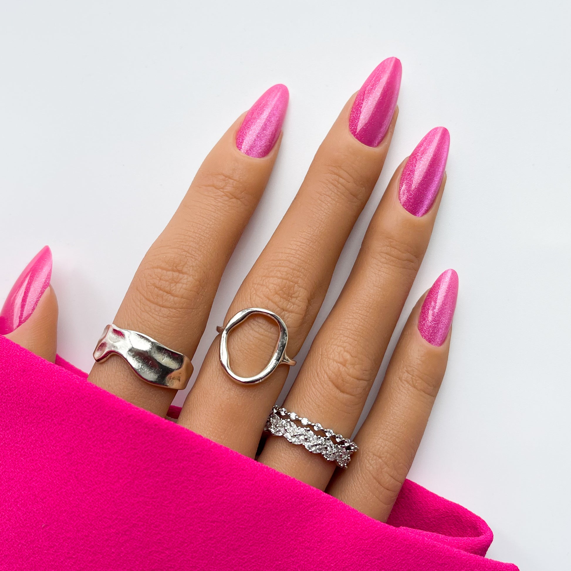 La teinte vibrante de rose fuchsia attire instantanément l'attention, tandis que les particules scintillantes ajoutent une touche de glamour et d'éclat à notre set Dahlia.