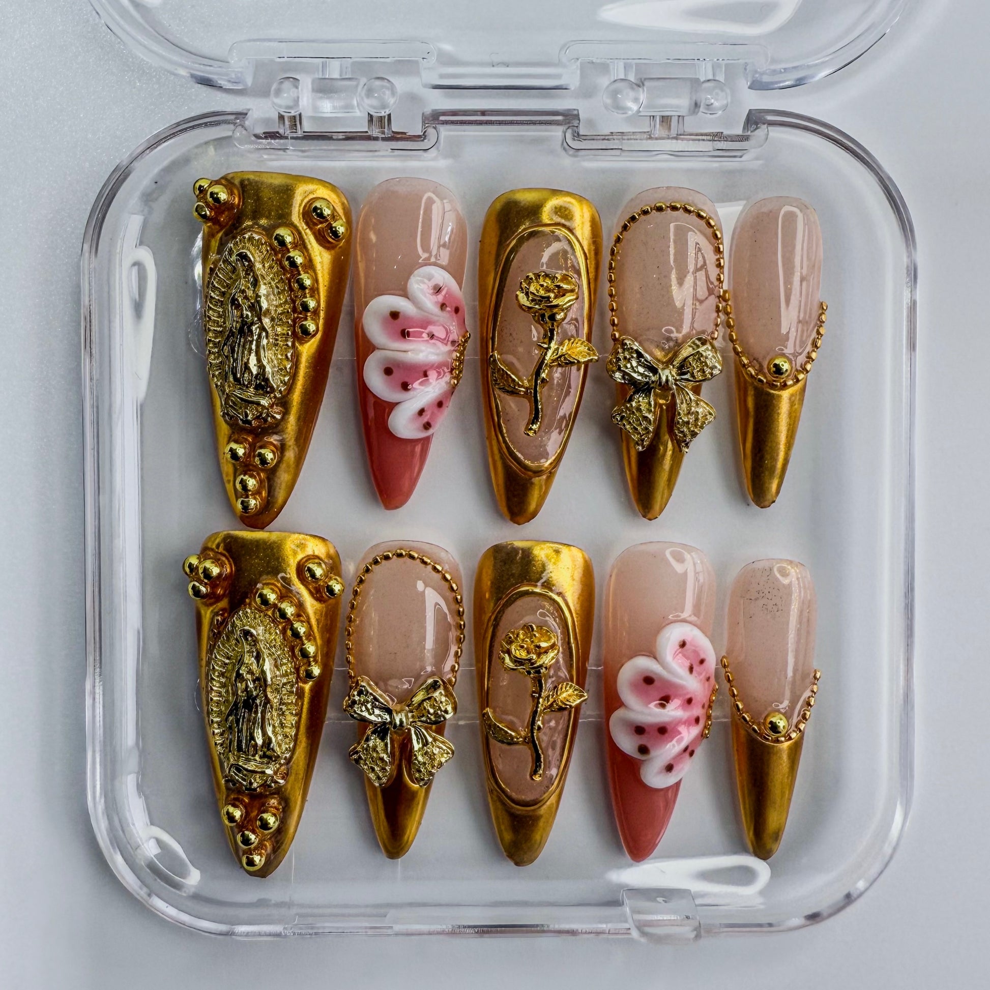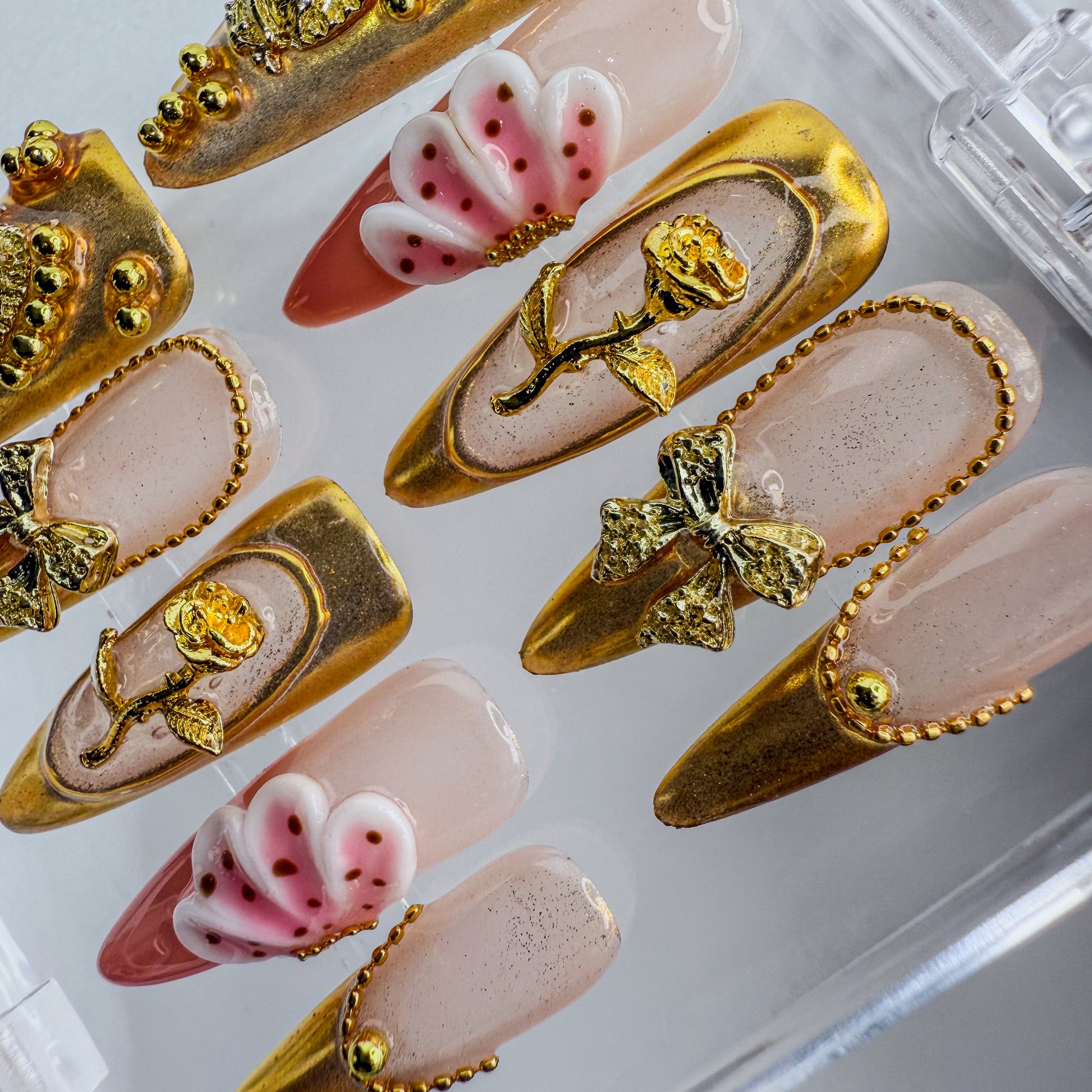 Découvrez notre set Divine Aura, des ongles personnalisés pensés pour une manucure parfaite en quelques minutes. Réutilisables, résistants et ultra brillants, ils offrent un rendu professionnel sans rendez-vous. Chaque pièce est conçue pour épouser naturellement vos ongles.